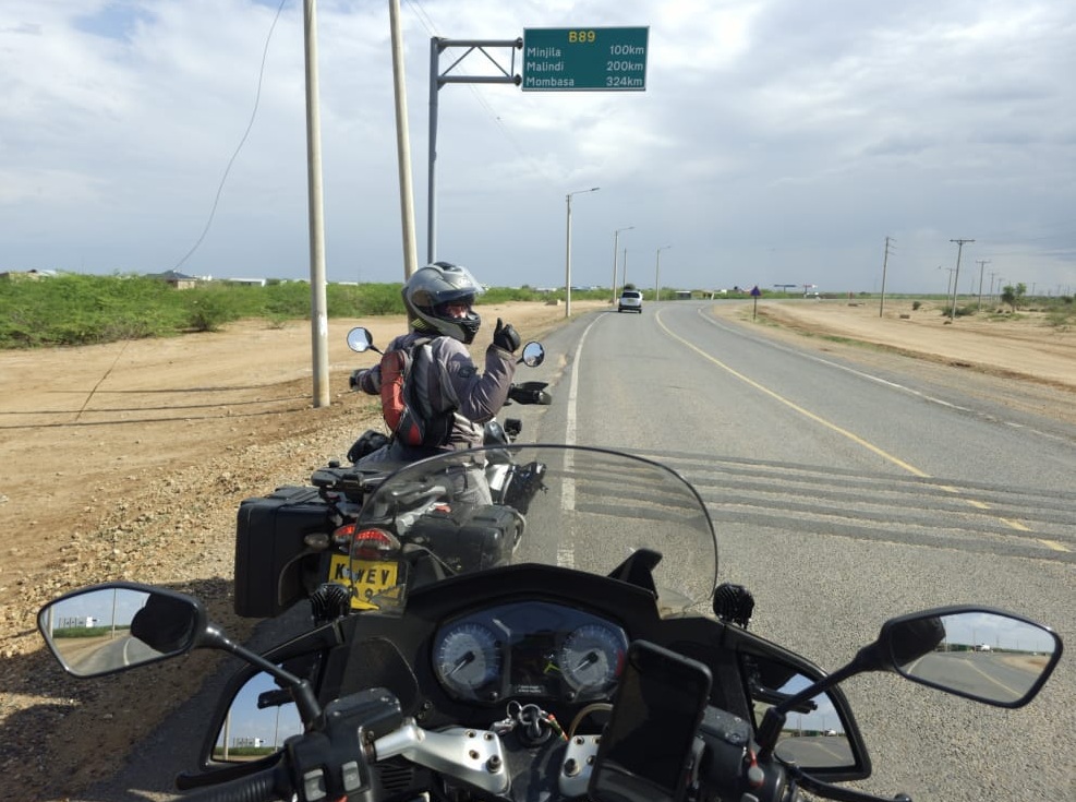 740km in one day? Should be doable, since we are both used to 500km+ rides and – well – BMW ✌️. We map out the day hour by hour, starting with a 6am departure at Gigiri, fuel stops in Mwingi and Garissa, and opt for lunch after the majority of kms will be done in the capital of Tana River County, 520km from home, with a 6pm arrival in Watamu. A fellow rider agrees to be on ICE stand-by.