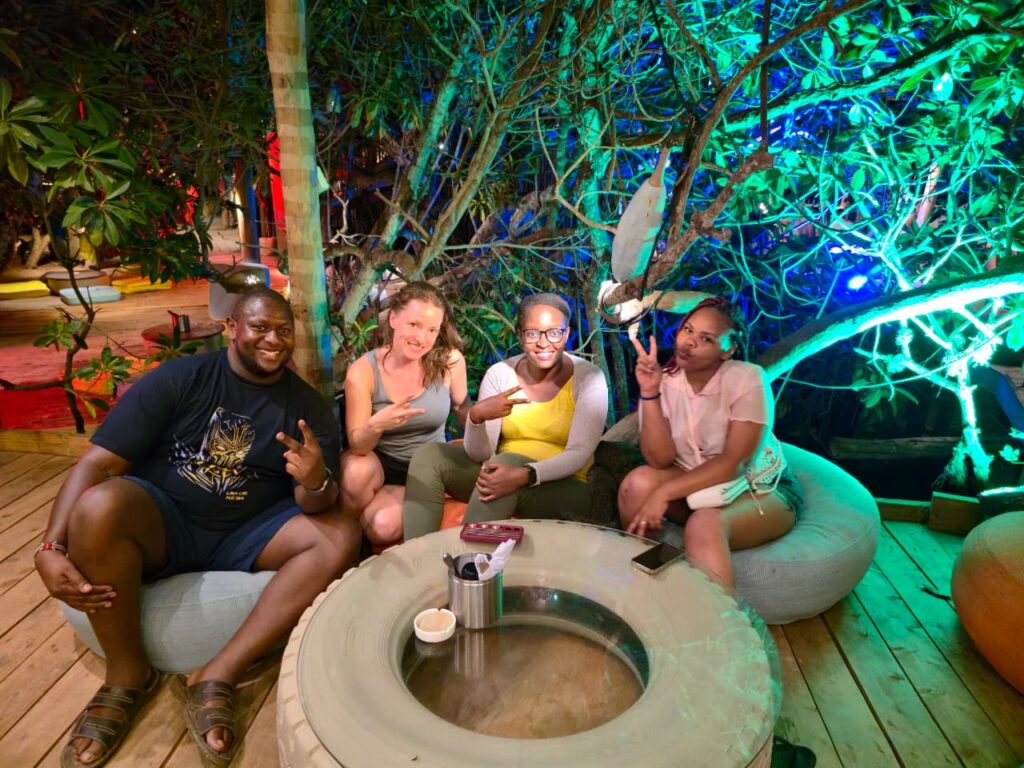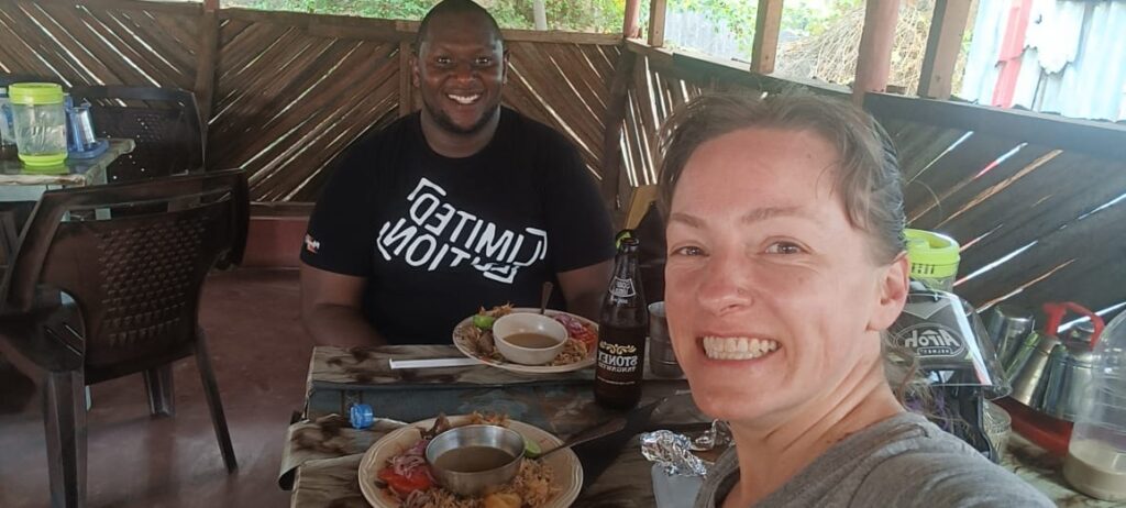 The universe loves us though! There’s a nice cafe offering buffet dinner and we add Chipsi Mayai as a dessert. It’s Mbeche’s first time in TZ so we’re having fun practicing our kiswahili sanifu with kaka-ing and omba-ing.