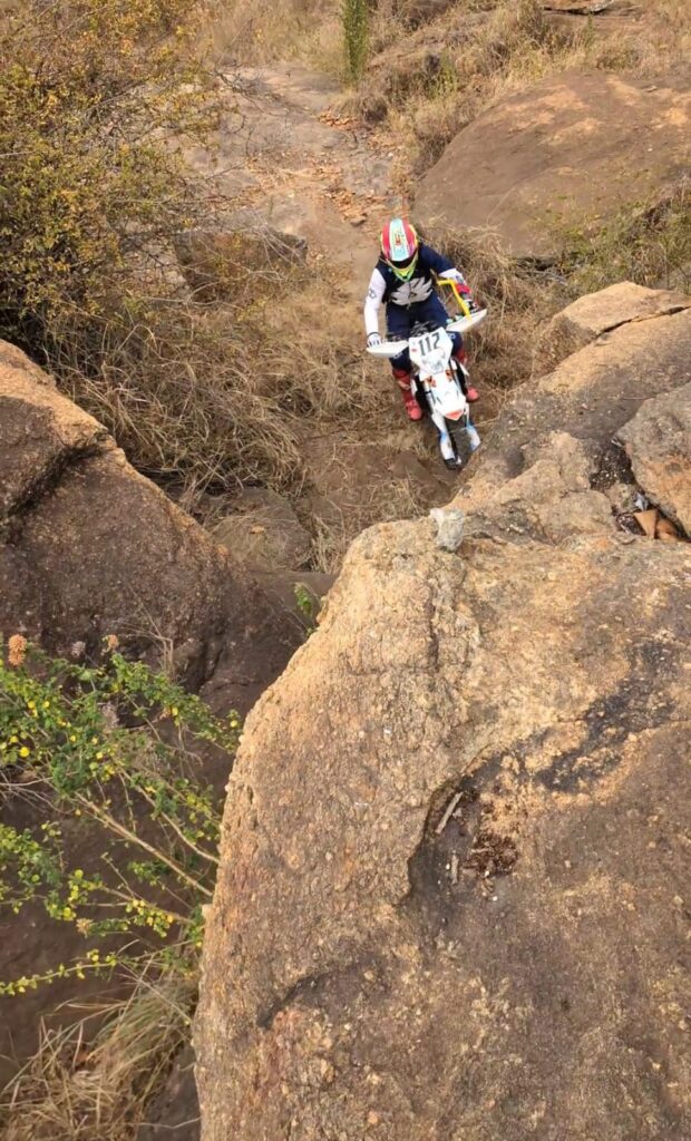 As opposed to Motocross which it’s sometimes confused with, Enduro is held in open landscape, not on a closed circuit track. In the savannah, in a forest, on a mountain, you get the drift.